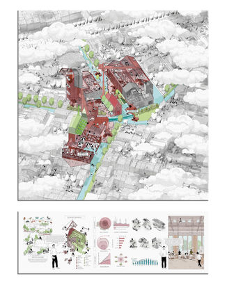 Les trois projets présentés ici ont tous été récompensés dans le cadre du concours international Europan. Ils présentent une application concrète de résolution architecturale et urbaine aux crises climatiques et sociales à l’échelle d’un quartier donné. Ces nouvelles architectures jouent ainsi le rôle de moteur : elles sont sources d’innovation, de cohésion économique et sociale et se veulent au service des communs. L’approche réinterroge et rouvre les imaginaires en sortant des vaines oppositions entre global et local, spécifique et générique, artificiel et naturel.